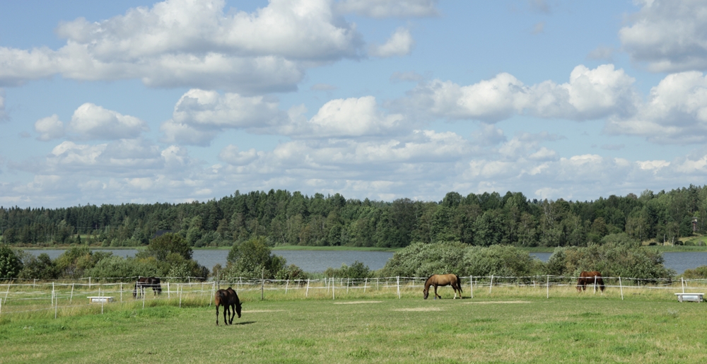 Kesäisin hevoset nauttivat laidunelämästä joko laumassa tai yksinään. Hevoset otetaan yöksi sisälle myös laidunaikaan.