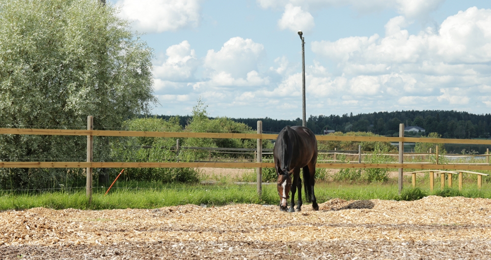 Hevoset tarhataan kokopäiväisesti joko yksin tai sopivan kaverin kanssa hakepohjaisiin tarhoihin. Tarhat siivotaan päivittäin.